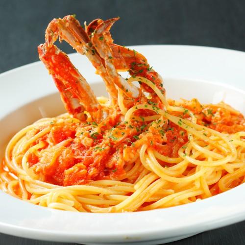渡り蟹の出汁による深いコクと濃厚な旨味、トマトの爽やかな酸味がより一層美味しさを引き立てる。蟹のエキスたっぷりクリーミーなソースを、オーダー毎に茹でるもちもちなパスタに絡める自慢の絶品パスタです♪★この他にもパスタメニュー多数ご用意!